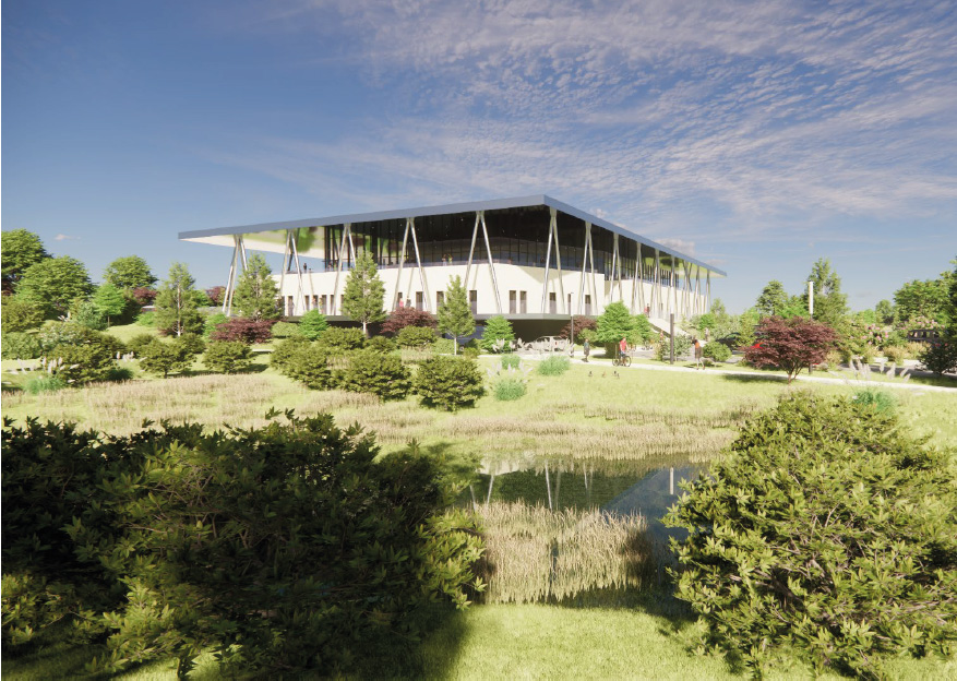 Sur le plan architectural et environnemental, le projet comprend des engagements forts en matière d’intégration paysagère, de sobriété énergétique et de gestion responsable des ressources (bâtiment labellisé Passivhaus). Une attention particulière sera aussi portée à son ancrage local fort, avec le recours à des prestataires de proximité, la valorisation des produits régionaux et un recours à l’emploi local.