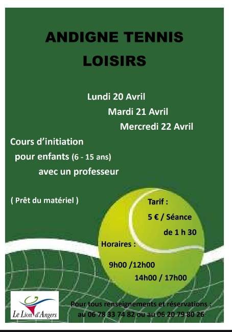 L’association Andigné Tennis Loisir organise des cours d’initiation pour les enfants de 6 à 15 ans, encadrés par un professeur.