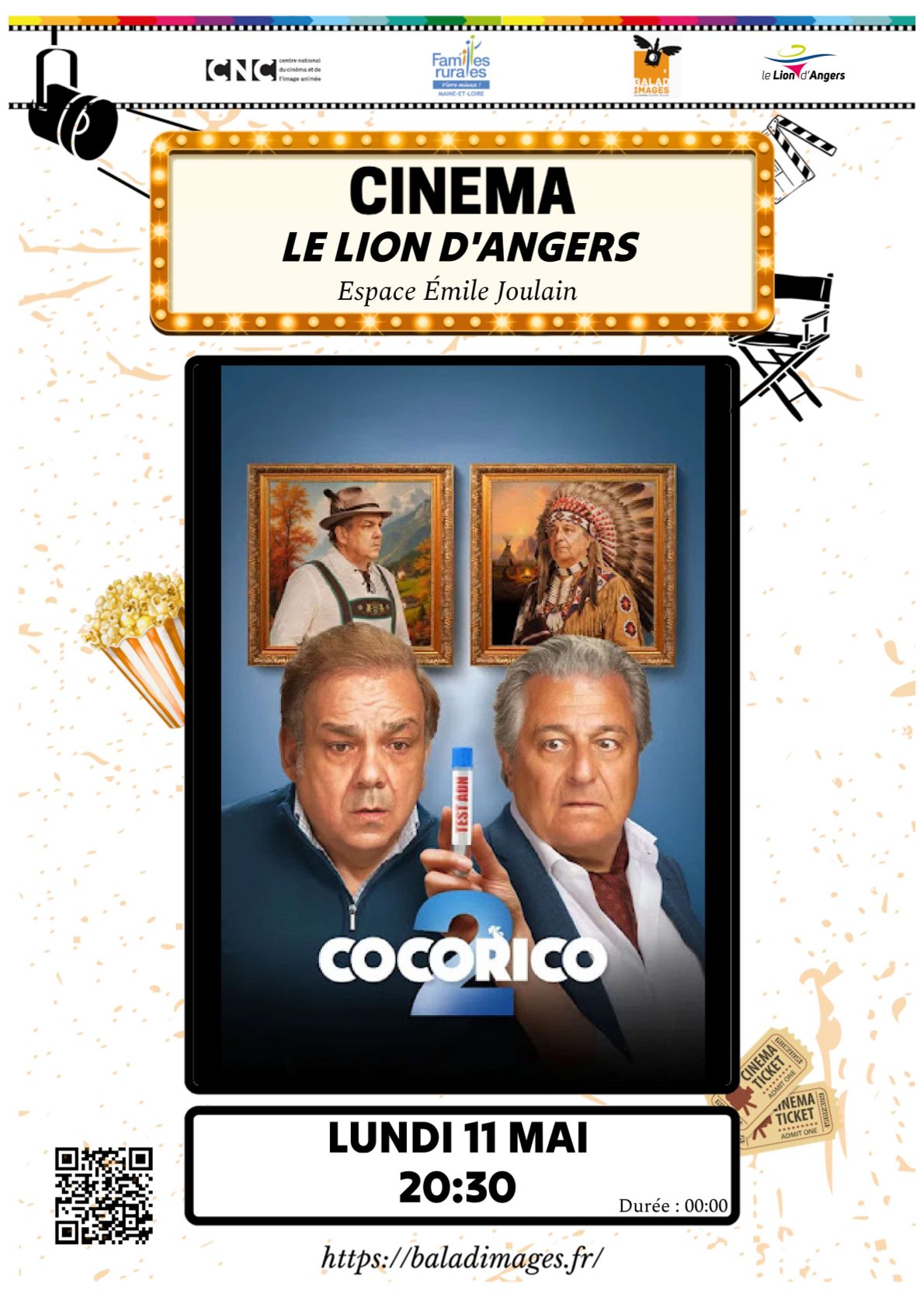 La prochaine projection de film proposée en partenariat avec la Fédération Départementale Familles Rurales du Maine-et-Loire aura lieu le lundi 11 mai 2026 à l’espace Emile Joulain.