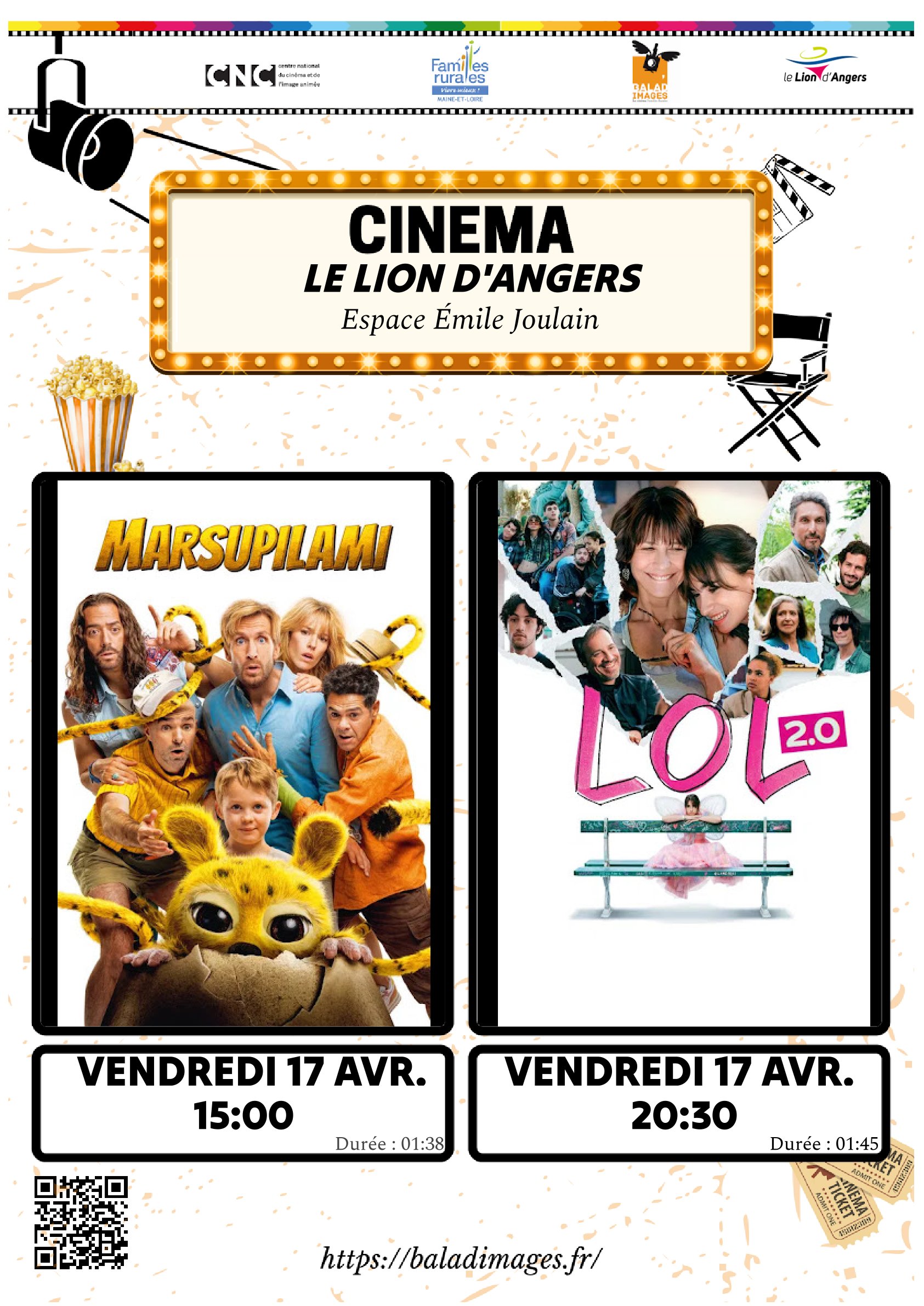 La prochaine projection de film proposée en partenariat avec la Fédération Départementale Familles Rurales du Maine-et-Loire aura lieu le vendredi 17 avril 2026 à l’espace Emile Joulain.